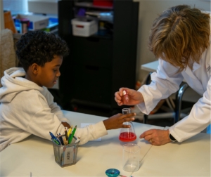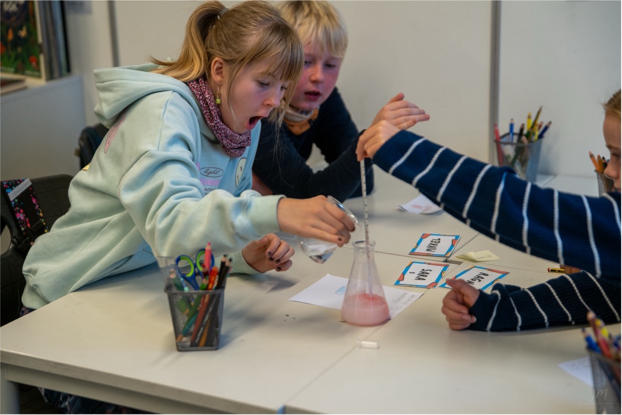 Deretter testet de hypotesene sine i praksis, og fikk oppleve hvordan vitenskap handler om å undre, utforske og trekke konklusjoner. Til slutt helte de mer vann i væsken, og oppdaget at den skiftet tilbake fra hvit til rød.